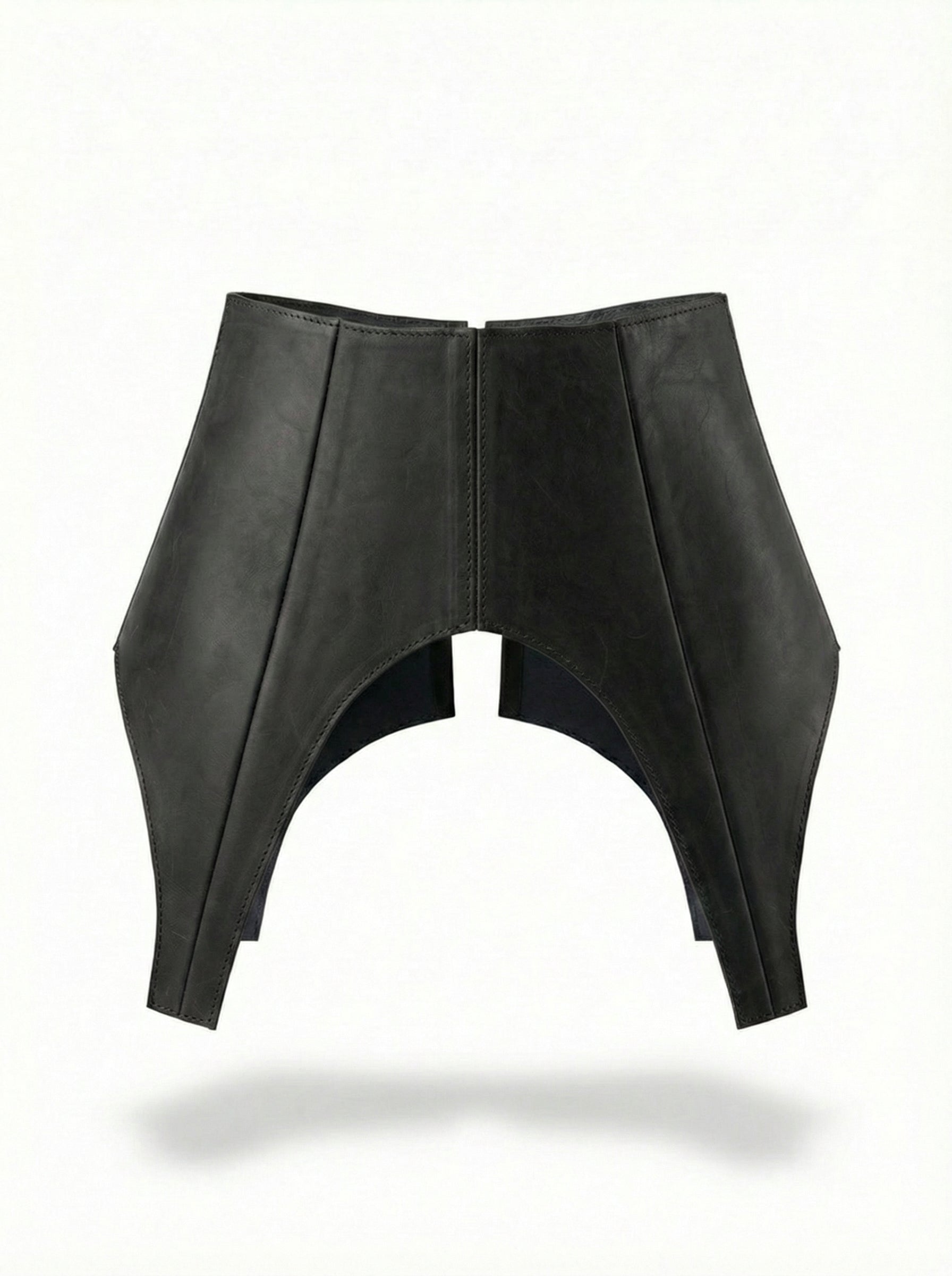 A structured leather basque belt designed to sculpt the waist and elevate any outfit with architectural shape.
