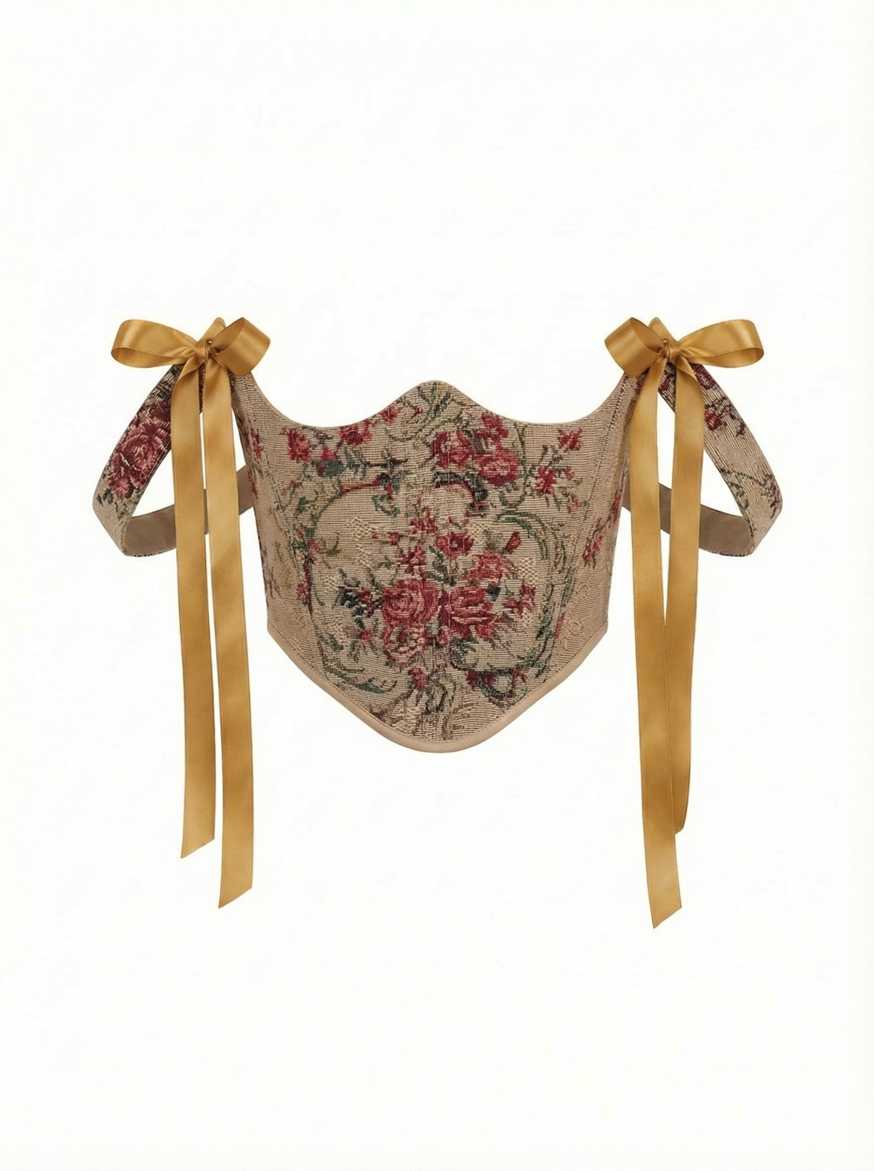 Cognac Floral Underbust Corset with straps designed to sculpt the waist and create a warm, defined silhouette. This structured boned corset sits under the bust, enhancing natural curves while allowing versatile styling with dresses, blouses or layered looks.