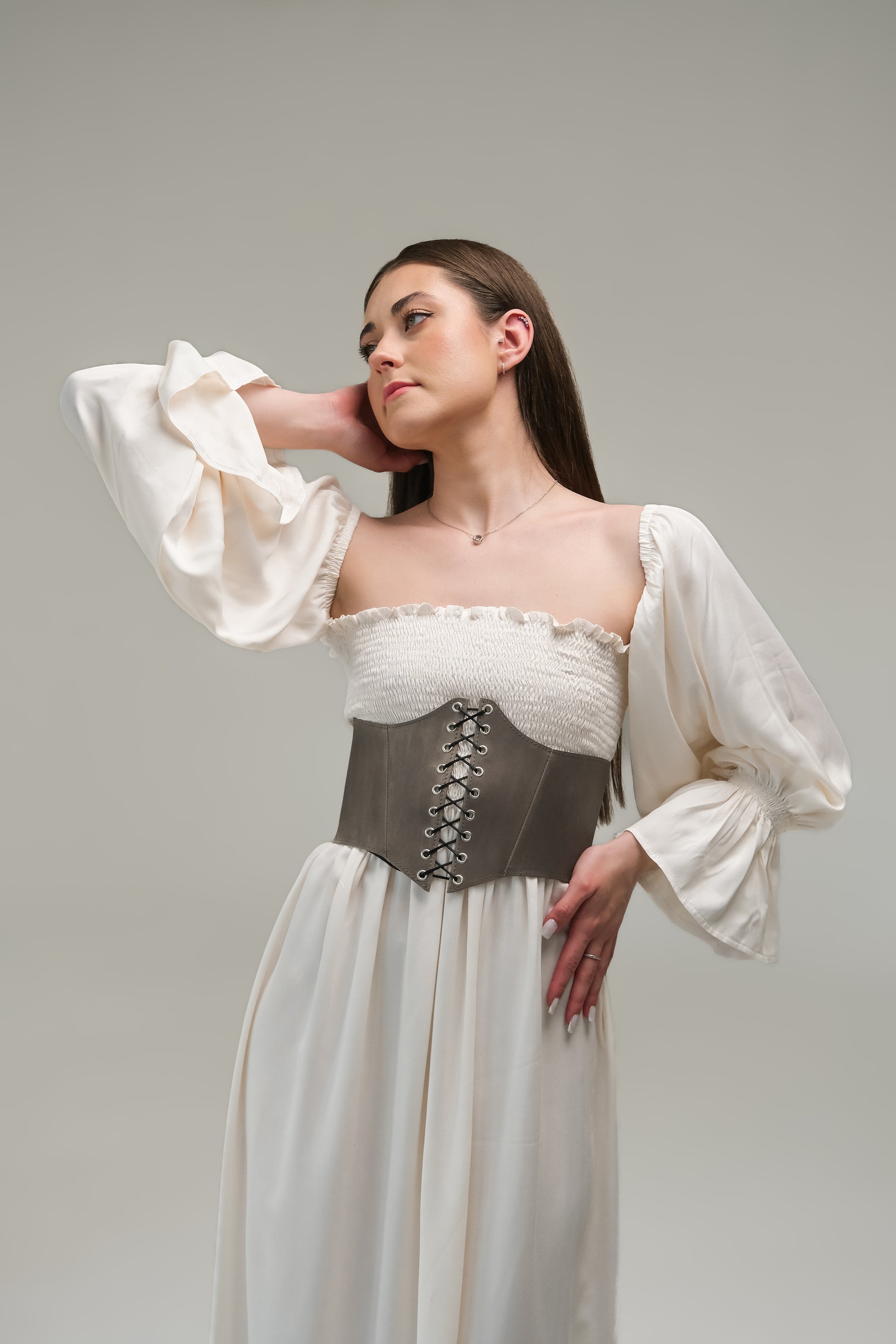 Gray Leather underbust corset belt, Renaissance outfit