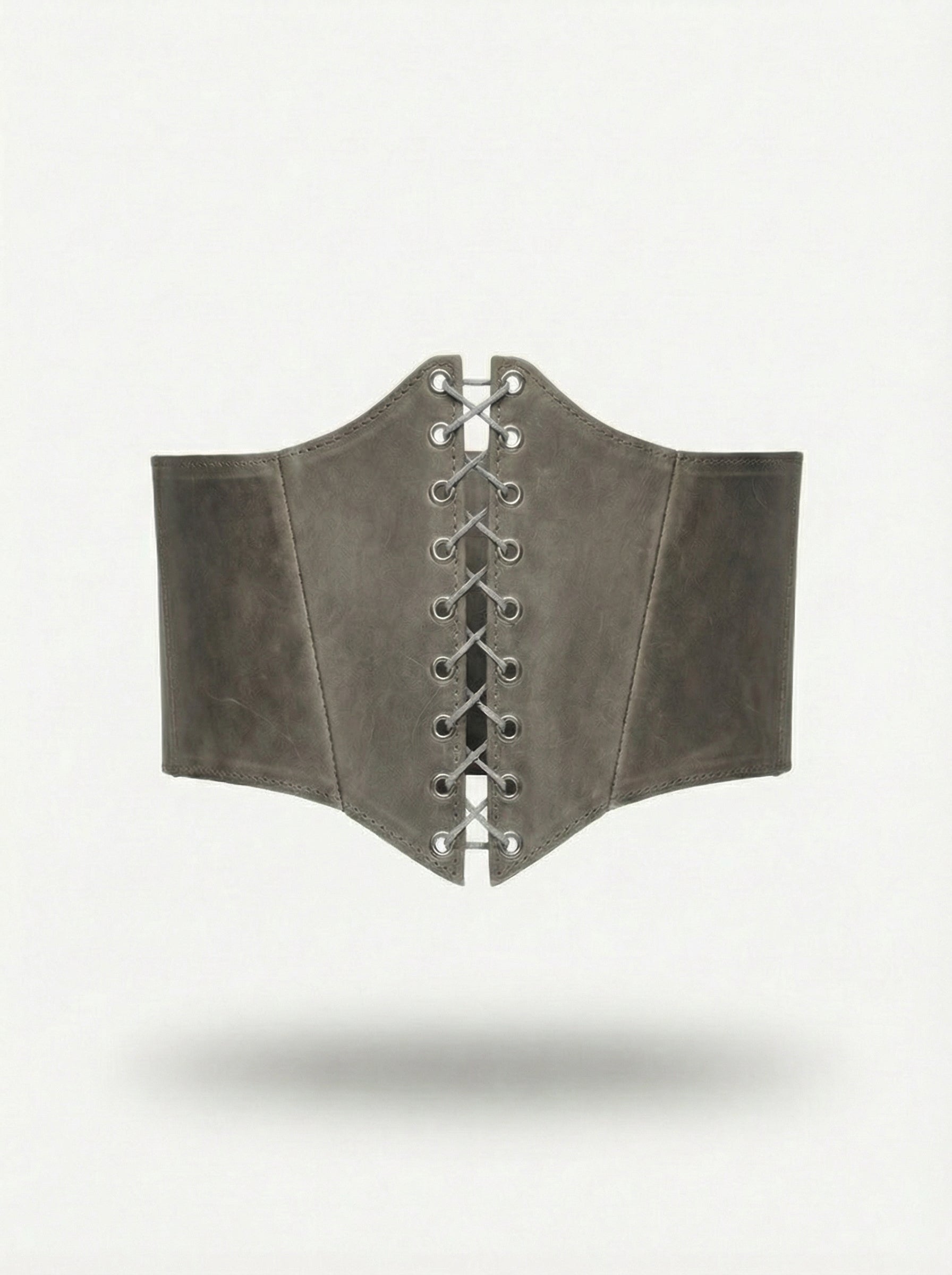 A structured leather corset belt designed to define the waist and elevate any silhouette with sculptural precision.